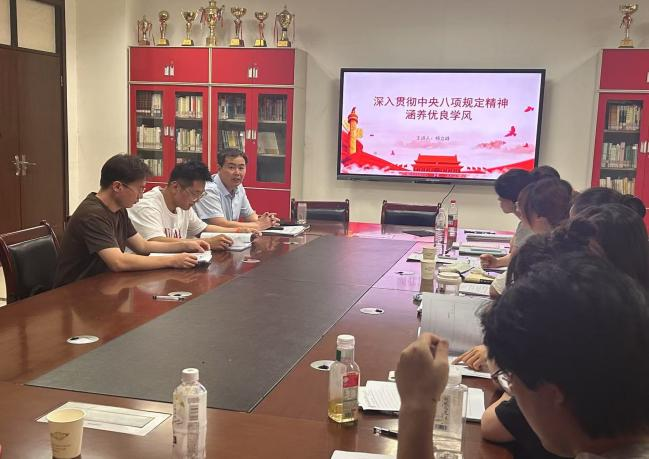 杨立峰指出,对于广大研究生而言,深入贯彻中央八项规定精神主要体现为优良学风建设。杨老师从科研人员基本科研规范、学术引文规范、学术成果规范、违反学术规范的处罚规定及研究生学位论文学术不端行为认定与处理办法等五个方面详细讲解了研究生学术规范的基本要求。最后,杨老师希望同学们以身作则、坚守学术诚信的底线,坚决抵制学术不端行为,努力提升学术素养,为学院优良学风建设添砖加瓦,共同营造一个风清气正、积极向上的学术氛围。